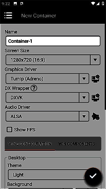 如需调整游戏画质,可打开Winlator模拟器,点击“容器配置”选项;