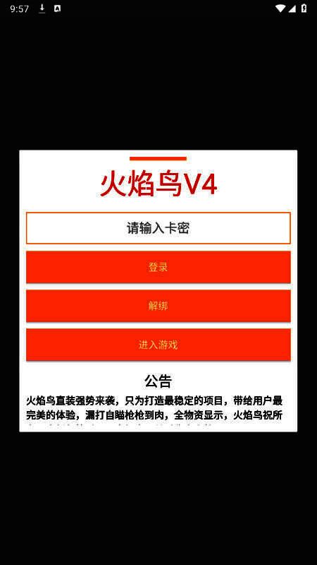 火焰鸟直装 免费稳定版是一款专为射击类游戏玩家打造的游戏辅助工具,旨在提升玩家在吃鸡等竞技模式中的表现。该软件无需手机Root权限,支持安卓、iOS及电脑模拟器平台,操作简单且完全免费,功能涵盖自瞄准、角色绘制、材料绘制、透视框、飞行美化等多个方面,全面优化游戏画面与操作体验。