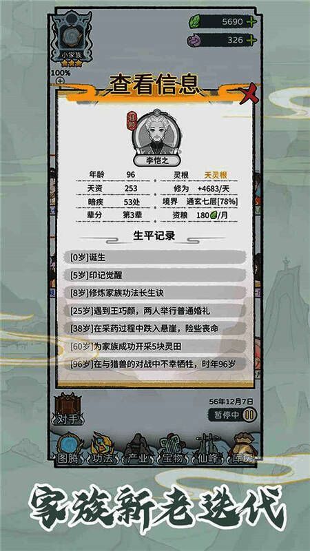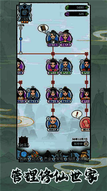 游戏采用多维度的成长系统,玩家不仅需要管理家族资源、提升角色属性,还需应对层出不穷的随机事件,如奇遇商贩、秘境探险、血脉传承等。每一次选择都可能影响家族命运的走向。通过合理分配资源、制定战略方针以及处理外交关系,玩家可以逐步打造出一个声名显赫的修仙世家。