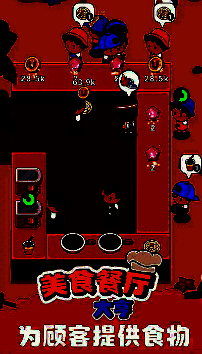 玩家需要招募员工、升级厨房设备、研发新菜品,并根据顾客反馈不断优化服务流程。每一道新菜品的推出、每一次餐厅扩张,都会带来满满的成就感。此外,游戏还设有丰富的主题活动和挑战任务,解锁限定装饰和稀有食材,助你打造个性十足的专属餐厅空间。