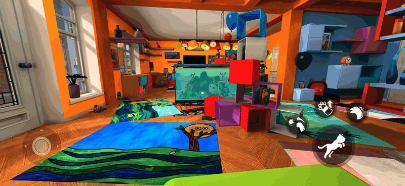 游戏亮点在于对猫咪行为的高度还原,包括抓挠、滚动、追逐等经典动作,让玩家仿佛真正成为一只猫。从舒适的卧室到宽敞的庭院,每个场景都暗藏互动元素与惊喜。此外,玩家还可与房间内的家具、物品以及其他NPC进行互动,深入体验猫咪视角的生活点滴。