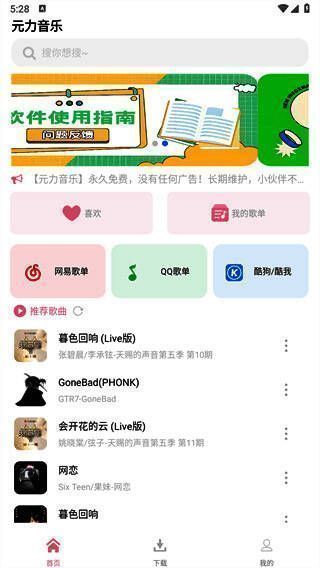 元力音乐拥有超过百万首曲目的音乐库,涵盖流行、摇滚、古典、电子等各类风格,满足不同用户的听歌偏好。此外,软件还提供50多个主题电台,内容多样且持续更新,支持无限免费收听。通过个性化推荐算法,元力音乐会根据用户的播放历史智能推送优质歌曲,让用户不断发现符合口味的新音乐。