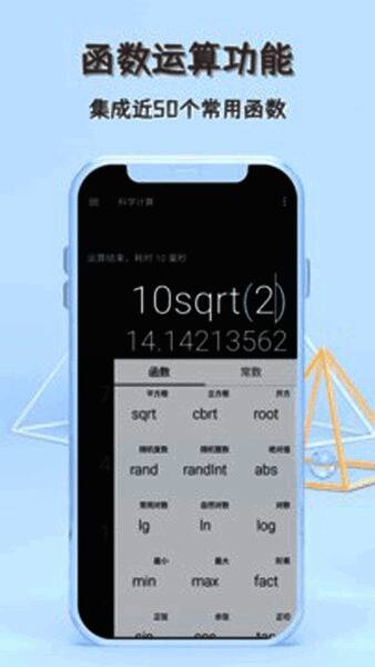函数计算器手机版由广州米度科技研发,是一款集高兼容性与专业数学运算于一体的安卓应用。其体积小巧(大小仅16.74MB),却功能强大,支持方程求解、函数零点计算、定积分、e底指数等复杂数学运算,涵盖近50种常用函数及21个科学常数。用户只需输入数据并点击“=”,即可快速获得精准结果,同时还具备十进制/二进制转换和历史记录回溯功能,充分满足学生、工程师及科研人员的日常计算需求。