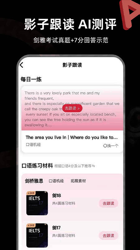 在口语训练方面,羊驼雅思设有“疯狂口语”、“全英语演讲”、“职场交流”等多种互动模块,让用户在模拟真实语境中不断锤炼表达能力。配合智能评分系统与逐句影读功能,用户可以精准模仿发音,实时纠正错误,有效提升口语流利度与自信心。