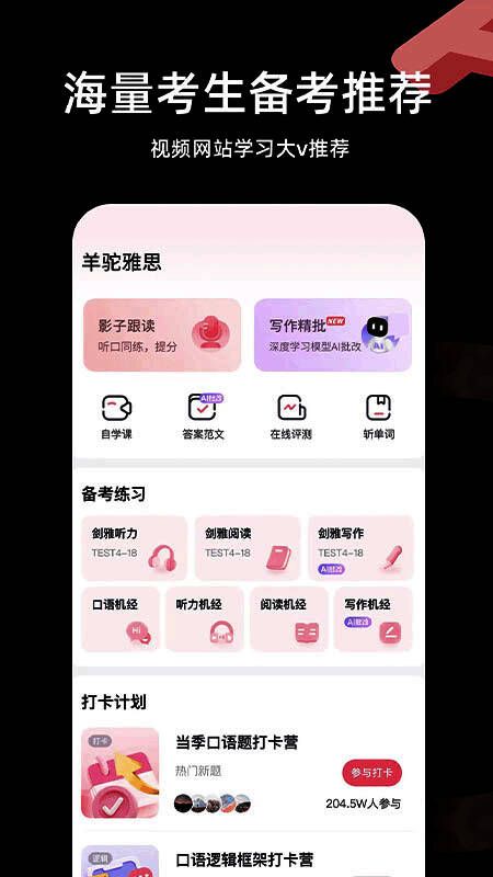 羊驼雅思作为一款备受欢迎的在线英语学习平台,凭借其系统化、个性化的教学方式,深受广大英语学习者喜爱。该软件不仅提供丰富的雅思课程资源,还结合最新的语言学习理念,帮助用户高效提升听、说、读、写综合能力。无论是备考雅思还是日常英语提升,都能在这里找到适合自己的学习路径。