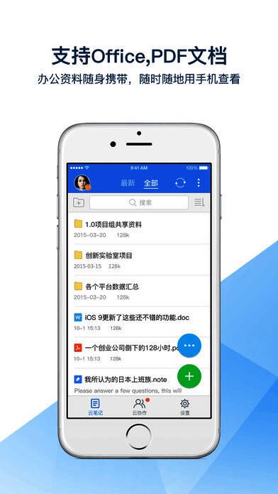 云笔记软件主界面截图,左侧为导航栏,显示“我的文件”选项">