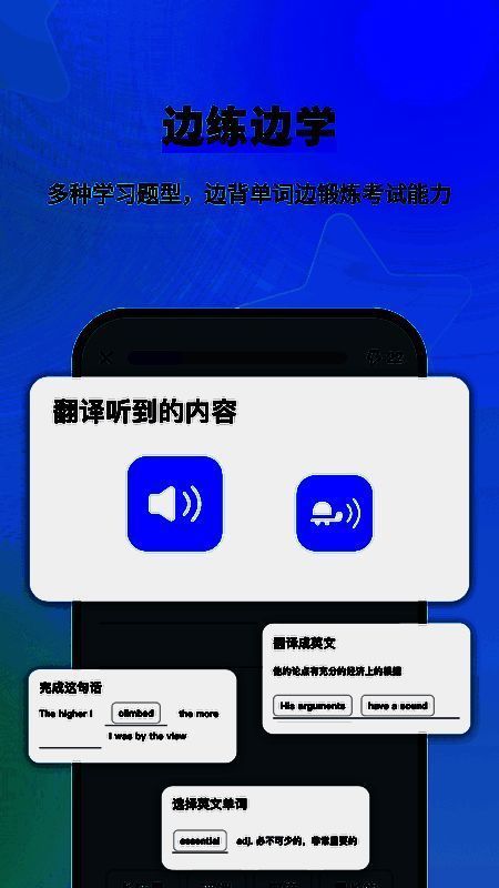 为了提高实际应用与考试应对能力,软件将试题练习与例句理解紧密结合,模拟真实考试环境,让用户在掌握单词的同时熟悉题型变化。此外,所有训练内容均来自历年真题提炼出的核心句型,确保学习过程更贴近实战。