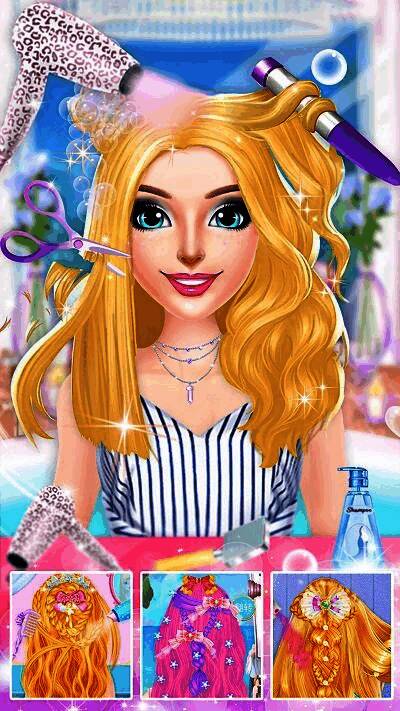 在游戏中,玩家需要完成一系列美发任务,包括接待来自不同王国的公主顾客,并按照她们的需求进行洗发、剪发、染发以及最终的造型设计。每一步都模拟了真实的美发流程,让玩家仿佛置身于一个充满魔法与魅力的美发世界。
