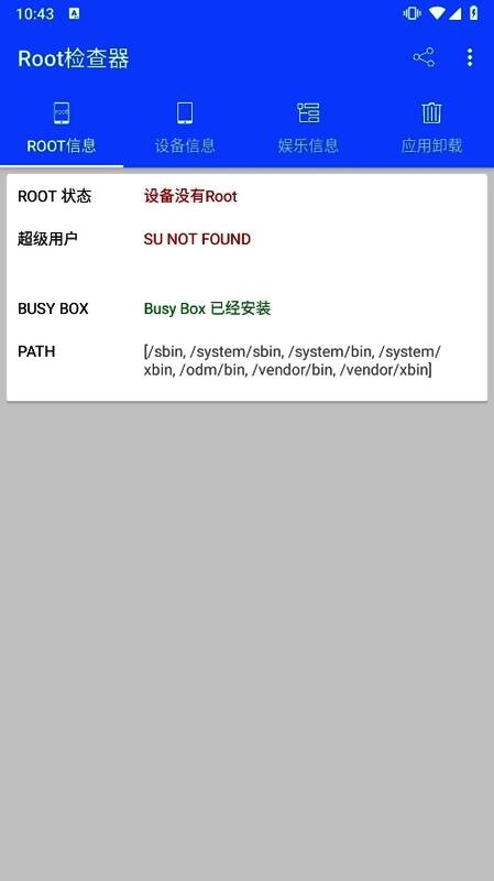 作为一款专注于Root检测的工具类APP,Root检查器凭借其轻量级设计与无冗余功能的操作逻辑,赢得了广泛好评。软件响应速度快、检测准确率高,兼容性强,适配各类安卓机型。除了提供Root状态查询外,还能展示丰富的设备信息,帮助用户全面了解设备配置,真正做到了“一目了然、操作无忧”。