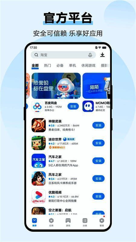 vivo应用商店涵盖各类流行应用程序和游戏,满足不同用户的多样化需求。基于用户的兴趣偏好和使用习惯,系统会智能推荐个性化内容,帮助用户快速发现实用或感兴趣的软件。同时,每日更新的应用排行榜也提供最新热门榜单,便于玩家掌握潮流趋势。