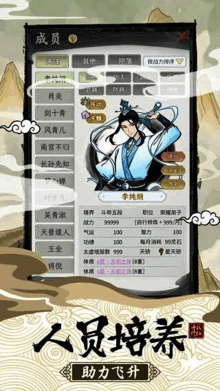 在修炼方面,玩家可以自由选择剑法、丹药等多种修炼路线,每种体系都有独特的成长路径与发展空间。这种灵活的机制不仅提升了游戏的可玩性,也让每位玩家都能打造出属于自己的特色宗门。