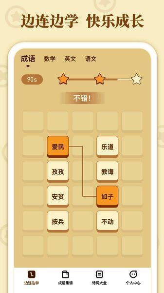 发才连一连是一款将成语知识与连线玩法巧妙融合的休闲益智类游戏。玩家在游戏中需要通过连线正确的字词,组成完整的成语,完成关卡挑战的同时提升语言文化素养。这款游戏凭借其寓教于乐的设计理念,吸引了大量喜欢文字类解谜游戏的玩家。