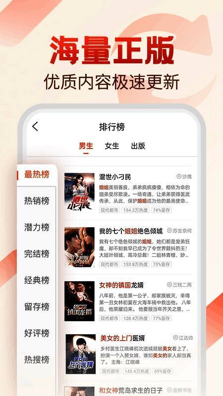 为了满足不同性别与兴趣的读者需求,《必看小说 官网版》设有男性向、女性向及全本小说排行榜,实时更新热门作品榜单。多样化的小说列表设置也帮助读者轻松发现当下流行的高质量作品,提升选书效率。