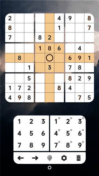《数独清》在视觉呈现上采用了极简主义禅宗风格,结合水墨画风与舒缓音效,营造出专注而宁静的解谜氛围。同时游戏支持多主题皮肤切换,如竹林、星空、古卷轴等十余种背景,让玩家在解题过程中也能享受视觉上的美感。