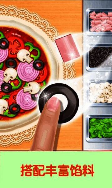 玩家可以在游戏中选择多种披萨原料,包括芝士、香肠、蔬菜、海鲜等,还可以调配不同口味的酱料,打造属于自己的专属披萨。几十种配料组合大大提升了游戏的可玩性,鼓励孩子发挥创意进行搭配。