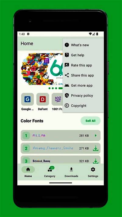 软件内置完整字体库,支持用户自由收集、替换各类字体风格。无论是文艺风、科技感还是复古范儿,都能在这里找到心仪之选。同时,平台提供高效的字体预览功能,让用户能快速找到最满意的样式。无论你是追求极简设计还是酷炫特效,zfont3都能完美适配各种品牌和型号的安卓设备。