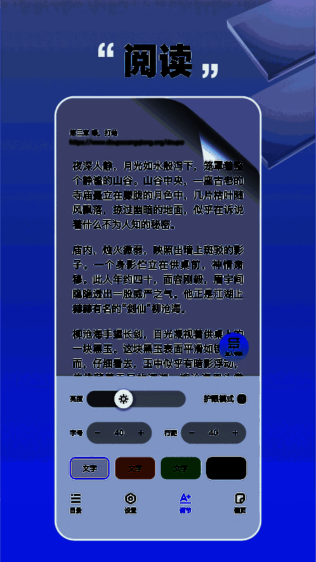 该软件不仅提供了一个无广告、无干扰的阅读平台,还支持多种背景主题自由切换,满足不同用户的视觉偏好。整个界面设计简洁明了,操作逻辑清晰,即使是初次使用的用户也能快速上手。此外,软件还提供丰富的自定义选项,包括字体大小、颜色、背景等,用户可根据个人喜好自由调整,打造最舒适的阅读环境。
