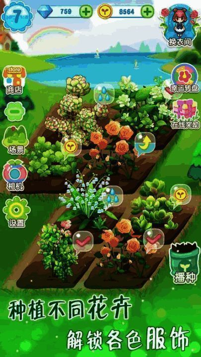 游戏的核心玩法围绕“种植”与“换装”两大元素展开。玩家需在魔法花园中播种、浇水、施肥,等待植物成熟后收获花朵或果实,并用这些资源兑换新的服装与装饰品。