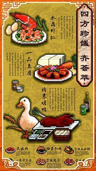 除了传统经营元素,游戏还引入了独特的“菜品开发”系统。玩家可以根据食材之间的兼容性进行搭配实验,提升菜品属性,甚至创造出全新的招牌菜。同时,将同一菜系的多道菜品组合使用,还能激活隐藏加成效果,并解锁“美食藏宝图”,获取经典名菜,进一步丰富菜单内容。