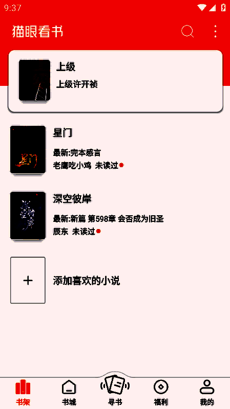 猫眼看书app以其迅速的内容更新著称,与各大主流小说网站保持同步更新,确保读者第一时间读到最新章节。平台内涵盖海量正版小说资源,覆盖多种题材与风格,满足不同读者群体的需求。
