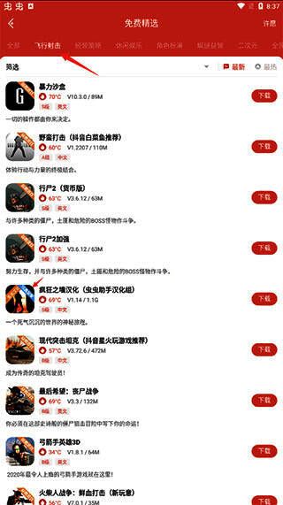 想要获取内置破解功能的游戏?只需打开虫虫助手首页,点击“免费精选”进入资源库,根据喜好选择对应分类。以飞行射击类为例,页面下方蓝色条目即为已集成MOD功能的版本,点击即可查看破解说明并完成下载。整个流程简单直观,即使是初次使用的玩家也能轻松上手。