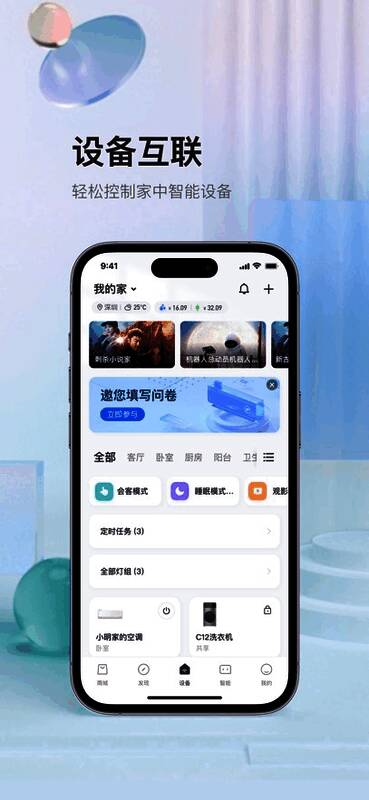 TCL APP不仅具备简洁美观的界面设计,更在功能上展现出强大的智能化优势。其操作逻辑清晰直观,支持远程管理家中的多种智能设备。例如,在设备页面中,用户可以实时查看并虚拟操控家电运行状态,真正实现“指尖掌控全屋”的便捷生活。