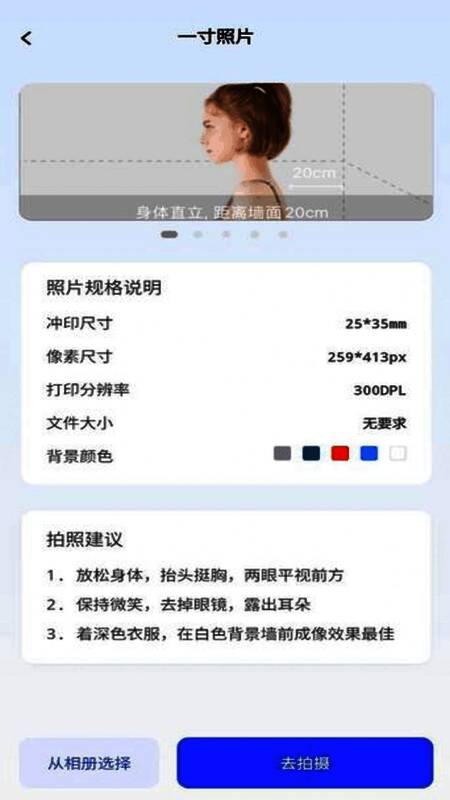 《素颜证件照》支持在线一键拍照功能,操作便捷,用户可随时随地拍摄符合标准的证件照。拍摄完成后,软件能迅速生成证件照片,并自动进行智能美化,提升照片质量。值得一提的是,软件还具备智能去图与一键变色功能,用户可轻松更改照片背景色,满足不同证件的背景要求,整个过程无需专业知识,操作门槛极低。
