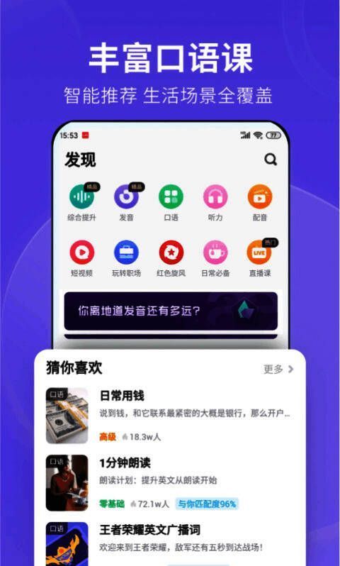软件内设AI导师系统,实时反馈发音准确性并提供改进建议;同时引入情景模拟对话、角色扮演等互动机制,使学习过程更加生动有趣,有效提高语言实际运用能力。
