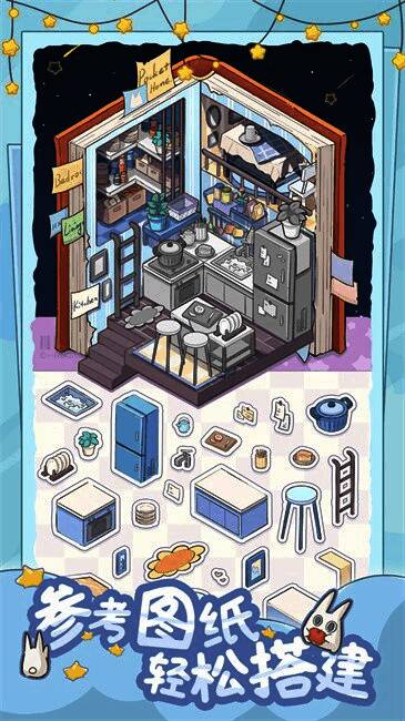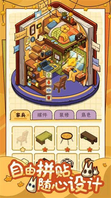 除了按照参考图完成任务外,玩家还可以发挥无限创意,自由拼贴并设计独一无二的房间布局。游戏提供丰富的家具、装饰物和建筑材料,满足不同审美需求,无论是现代简约风、田园乡村风,还是欧洲古典或卡通动画主题,都能轻松实现。