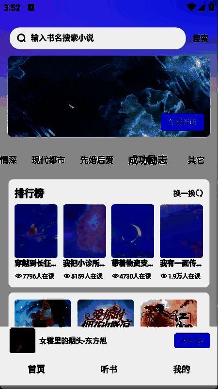 必听免费小说免费版APP提供了非常舒适的小说追书体验。软件中的小说分类详细,易于搜索。你既可以通过精确的书名搜索快速找到你最喜欢的作品,也可以按类别浏览,发现不同风格的宝藏小说。其有声阅读功能由专业主持人录制,声音质感丰富,对书中情节的演绎生动,带你身临其境地感受故事的魅力。为了满足不同人群的听书需求,你可以搜索你喜欢的书的主题。各种小说内容丰富多样,可以随时直接点击收听小说。