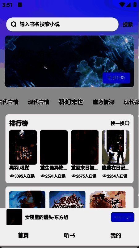 必听免费小说APP是一款完全免费的小说阅读软件,专为热爱阅读的用户打造。无论是奇幻世界的奇妙冒险,还是都市生活的跌宕起伏;无论是浪漫故事的情感纠葛,还是科幻宇宙的无尽想象,这款应用都能充分满足你多样化的阅读需求。它不仅提供丰富的小说资源,涵盖言情、科幻、武侠等多个热门类型,还支持有声书模式,彻底解放用户双眼,让阅读变得更加轻松。