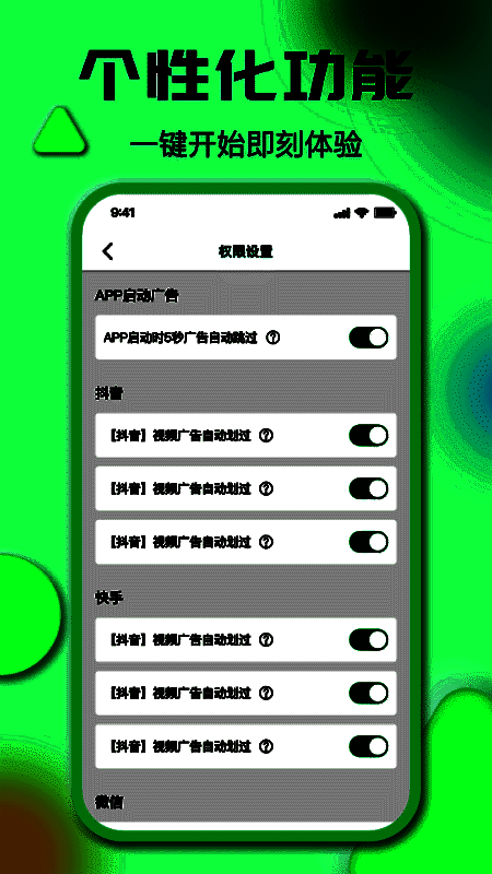 简约设计,万无一失操作。不需要复杂的设置。只需启用访问权限,广告将自动跳过。