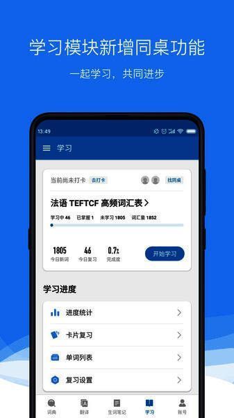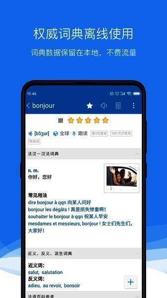 1.权威的法语学习字典可以离线使用,各种数据保留在本地,不消耗数据流量;