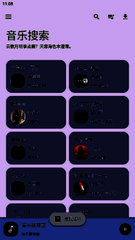 音乐搜索器app下载最新版是一款全新的免费音乐播放软件,可以为用户实时更新各种音乐歌单,随时查看热门音乐歌曲资源,还拥有各种音乐榜单,轻松让用户自由获取最新最受欢迎的音乐,方便用户在线听歌,给用户带来全面的听歌服务和乐趣,还可以轻松同步用户的音乐收藏和播放列表,允许用户自由设置无损,高清等音质,自由播放感兴趣的音乐歌曲,能完全满足用户的所有听歌需求,喜欢音乐的用户欢迎来这里下载软件。