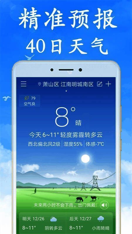 2.小时天气预报:实时掌握24小时天气变化,提前防止天气温差。