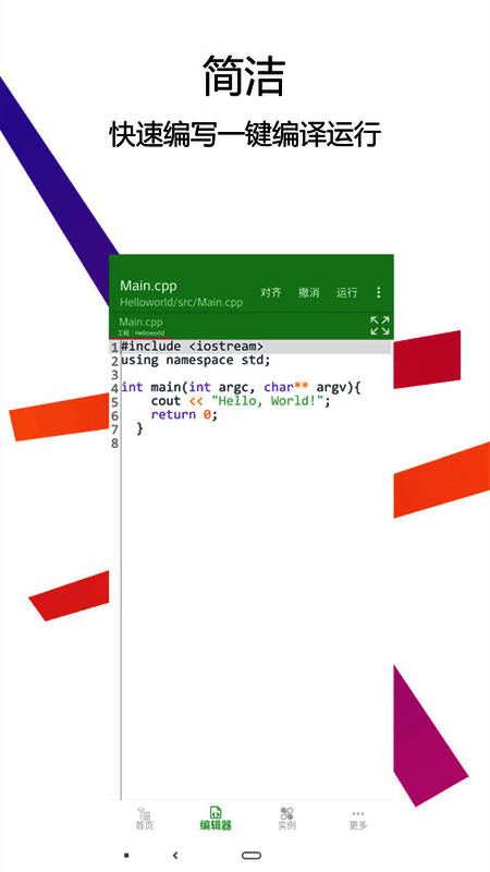 C++编译器 手机版是一个专门用于C++代码编写和编译的C语言IDE,也是一个C++学习工具。与同类软件相比,该软件功能非常强大,具有更完善的代码提示和快速的代码块输入功能。其完整的C++环境集成允许用户直接编写、编译和运行C++代码程序,只需单击一下即可编译和运行,为用户带来更高效的体验。为了使用户能够快速提高C++代码编写能力,C++编译器 手机版为用户提供了大量完整的C++入门教程、编程代码示例和视频,用户可以直接查看,随时随地学习,从头开始学习编程。小白也可以成为伟大的神。学习时,您可以在观看教程的同时调试代码,也可以直接运行教程中的代码,这对您的学习和理解更方便。