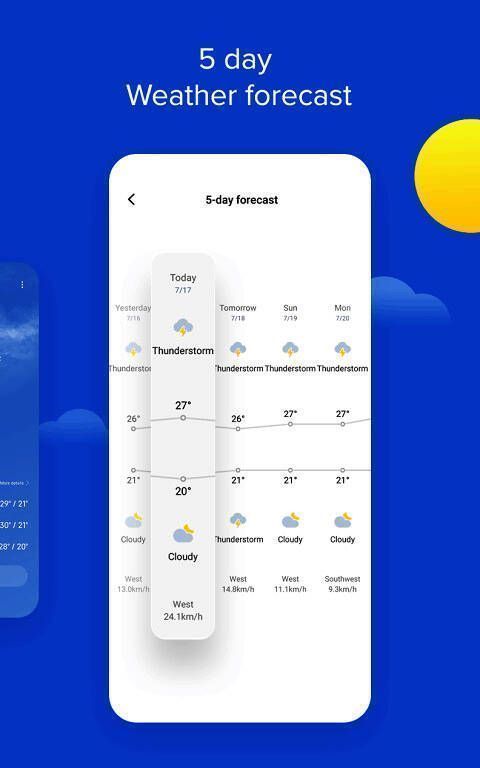 每天的天气可以动态显示日出和日落,白天和晚上都可以在这个软件中找到。