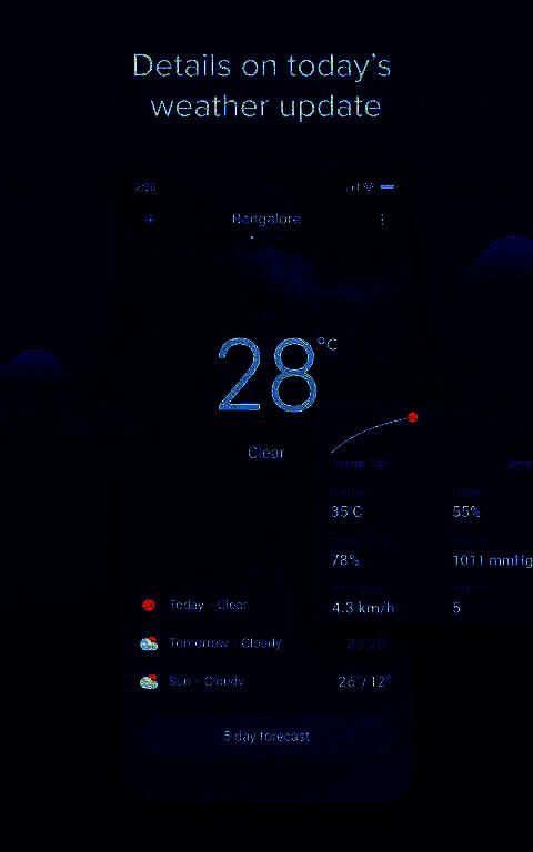 小米天气app新版本APP直接下载就可以浏览精准的天气情况了。高精度天气效果,带给您极致的用户体验,让您轻松获取天气状况。对于诸如下雨、下雪、降温等突发天气,手机也会自动发出通知。你也可以转发当地的天气给你的亲人和朋友,这是非常方便的。它提供动态的天气效果,令人眼花缭乱的设计确保你有一个好心情,即使在雨天。随时查看天气变化数据。无论是未来24小时、未来一周、未来15天、未来45天的天气情况,你都可以随时点击获取。