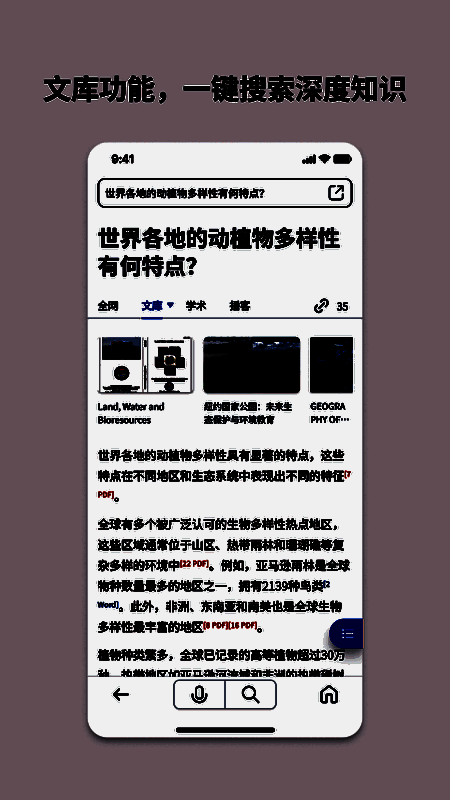 3.具有全网搜索、学术搜索等功能服务,可以帮助用户更好地查找和组织信息。