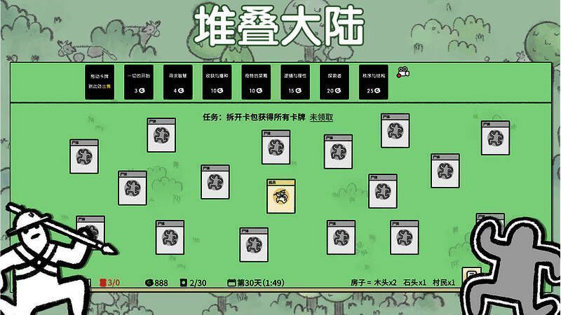 1、背包里有很多卡片,你可以用它们来扩展你的村庄。