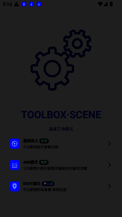 scene工具箱专业版APP直接下载就能免费使用所有功能服务了。本软件主要针对Android用户设计。它具有应用程序备份、数据清理、电池状态、功耗统计和自动点击等内置功能,可以帮助用户更好地管理他们的移动设备。内置的功能非常丰富和实用。多种场景模式可以自由使用。它集成了通知阻塞、自动切换、独立屏幕亮度、键阻塞、独占设置、性能监控等功能。如应用管理功能、备份恢复功能、SWAP设置功能,解决了所有玩弄机器的需求。
