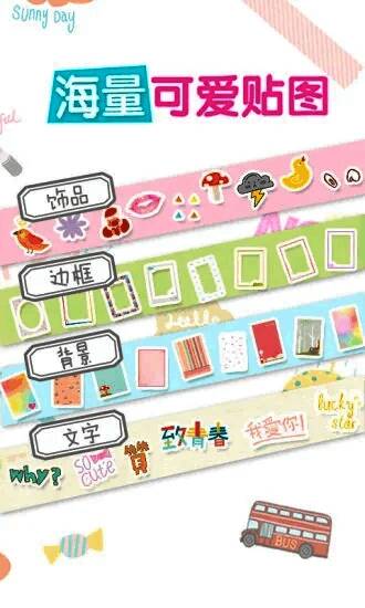 这款软件可以让用户轻松自由添加各种有趣的贴纸元素到您的照片,还提供实时贴纸功能,可以在拍摄的瞬间选择和添加贴纸,随时让用户立即看到照片中贴纸的效果,给用户带来全面的服务和体验。