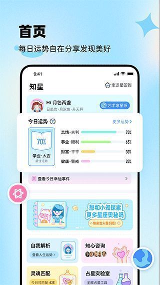 知星以心理学和天文学为基础,以星座为载体的社交软件致力于打造“星座+社交”的全新约会模式。深受年轻人喜爱,它不仅为用户提供了更深入的自我解读,也为用户开启了更专业的星座社交新篇章。你还可以从你的性格、爱好和其他方面准确分析各种数据,你还可以每天看到适合每个不同星座的颜色和幸运数字。许多人通过命运的结合与一切交朋友,通过爱情评价与暖心的异性更亲密,通过释放自己的感情建立自己的宇宙。你不再是生命中的一颗小透明,而是星系中一颗独特而耀眼的恒星。这是你的爱好发展之地,你的心情树洞,你的交友世界。