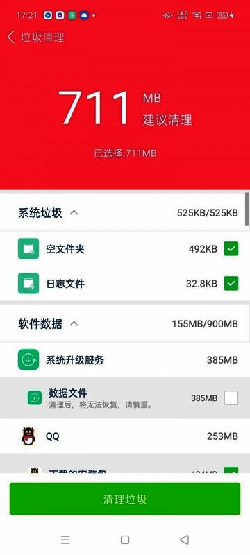 3.一键清理:识别出无用数据后,用户只需点击一键清理按钮,软件就会自动删除这些文件,快速释放存储空间,让手机运行更加顺畅;