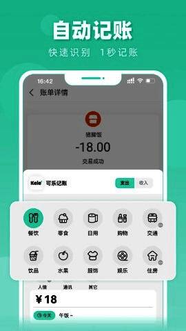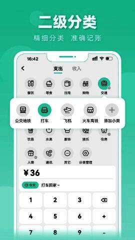4.快速分类操作:预置食品、饮料、交通等多个消费类别,方便快捷记录。