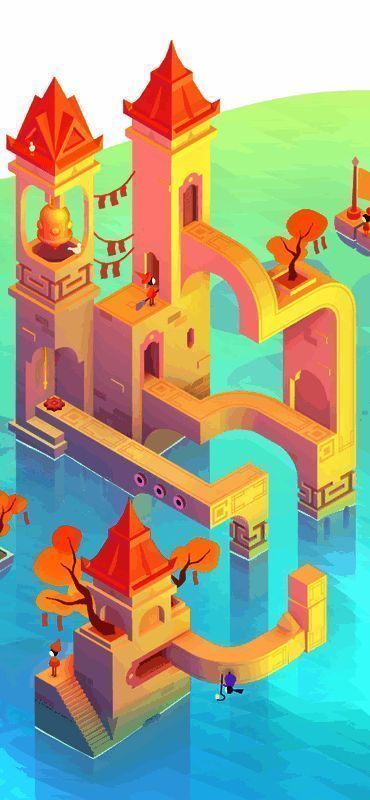 1、经典的游戏内核,纪念碑谷3延续了本系列一贯的极简主义美术风格与地图设计。