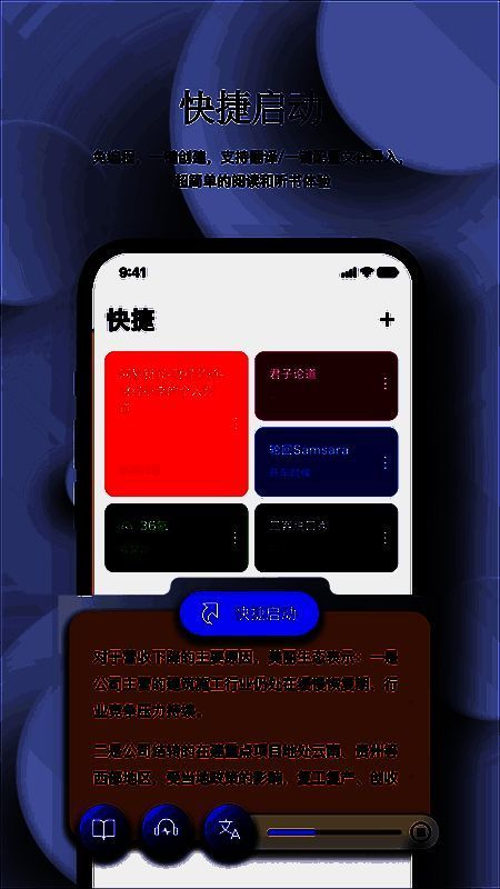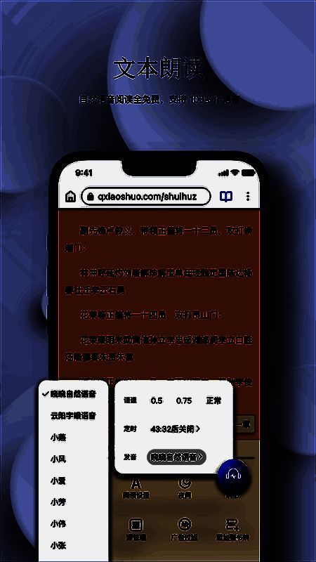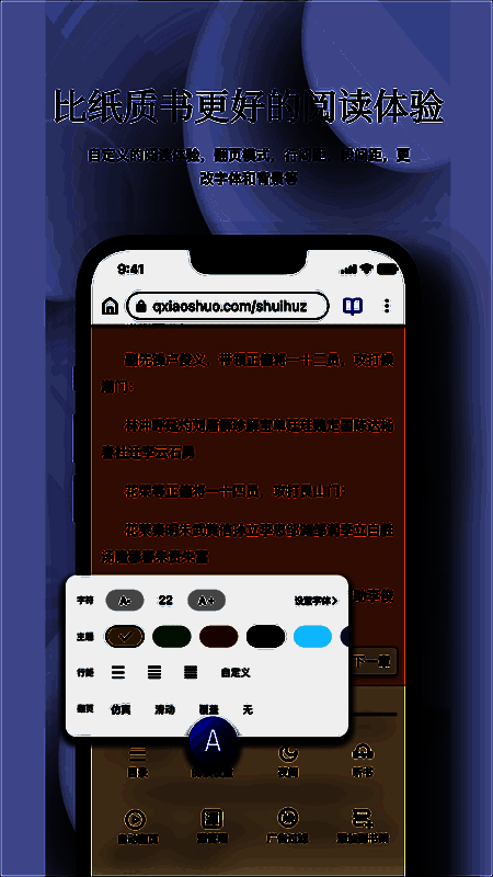 4.根据自己的爱好创造最舒适的阅读环境,听书、字体、自动翻页,晚上改变背景…