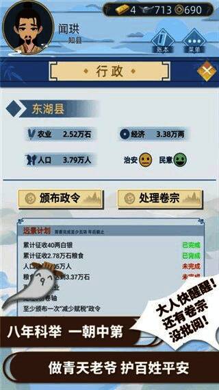 2.高度灵活的管理玩法:玩家可以独立管理自家的生意,从农田到店铺,从科举到官场,都需要玩家精心的规划和管理。