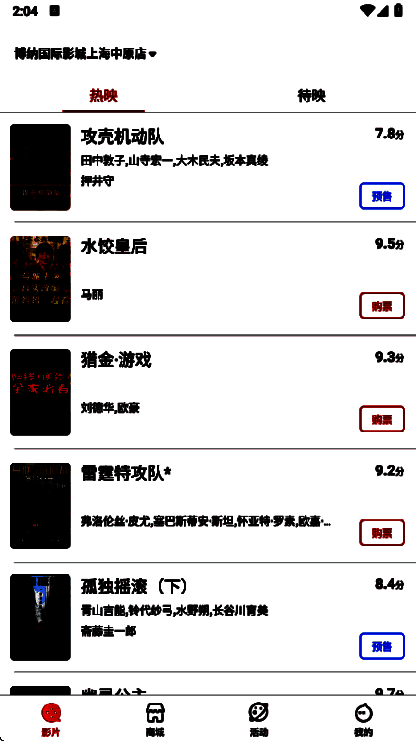 3、覆盖全国主要城市的主要影院,支持上千家在线售票影院。