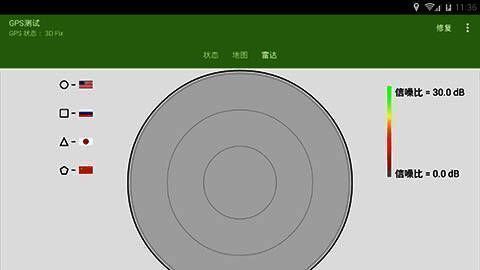 3.GPS信噪比(SNR),显示每个卫星的信号强度、精确度和GPS状态的条形图。